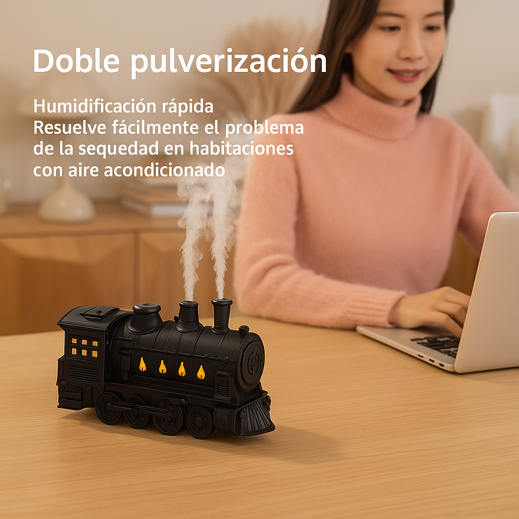 Cada detalle —desde su forma inspirada en un clásico tren de vapor hasta su suave emisión de niebla— ha sido pensado para aportar belleza, calma y carácter a tu hogar.